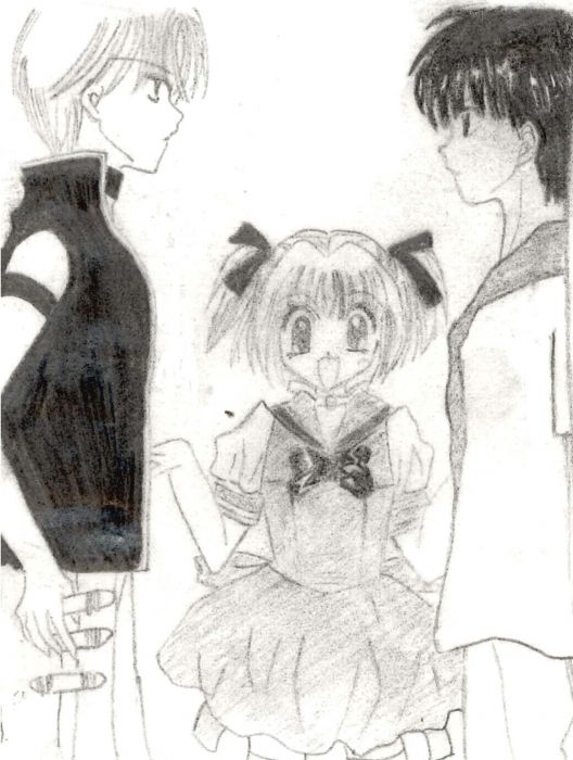 I liked the picture in the Manga so I decided to draw it. That's how I draw most of my drawings. After drawing this I relized how tall Masaya and Ryou are!