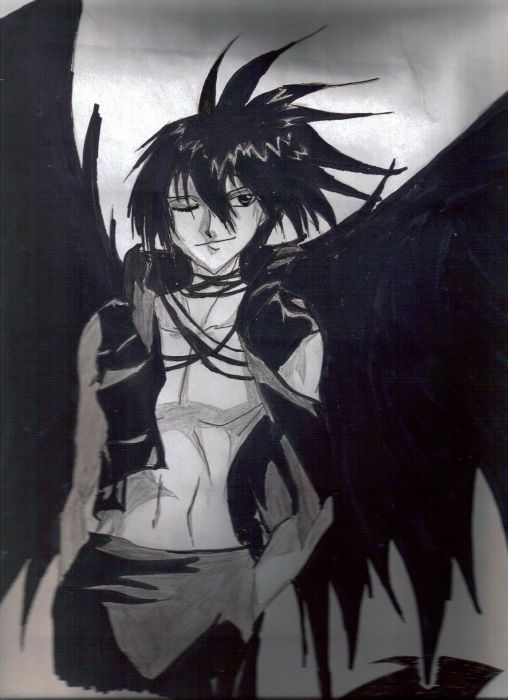 This is very old indeed. maybe 2-3 yrs old. I had to be very careful when I put this in the scanner cause the paper was so fragile.... It has been cropped since the scanner wasn't big enough for the 8 by 17 paper. heh... yea it's a big pic.. lol I had the hardest time with the black since I had no good black pens and I was running out of ink halfway through this... -.-
