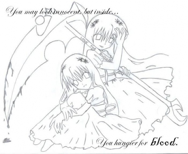"You may look innocent, but inside... you hungier (sp) for blood." "There is never enough blood shed." ----------------- hly sht tis thing took me 3 days *everyone gasps* ya i noe, it still looks like crap, well i have sumthing to say, stfu D< jk, jk, jk i have a shaded one commin up next (: .: pose refrence :. comments and votes plz (: thank you for viewing and have a very merry christmas