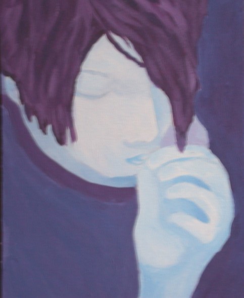 So I did this for my drawing and painting class a few weeks ago and, I decided to submitt it. This was my very first painting and, yeah it's suppose to be Miyavi sleeping. I only used cool colors and, I used acrylic paint. Sorry for the bad quality, I decided to take a picture of the painting, rather than use my scanner. Please don't be too harsh if you give crituque, considering that this is my very first painting. Well, I hope you guys like it.:D