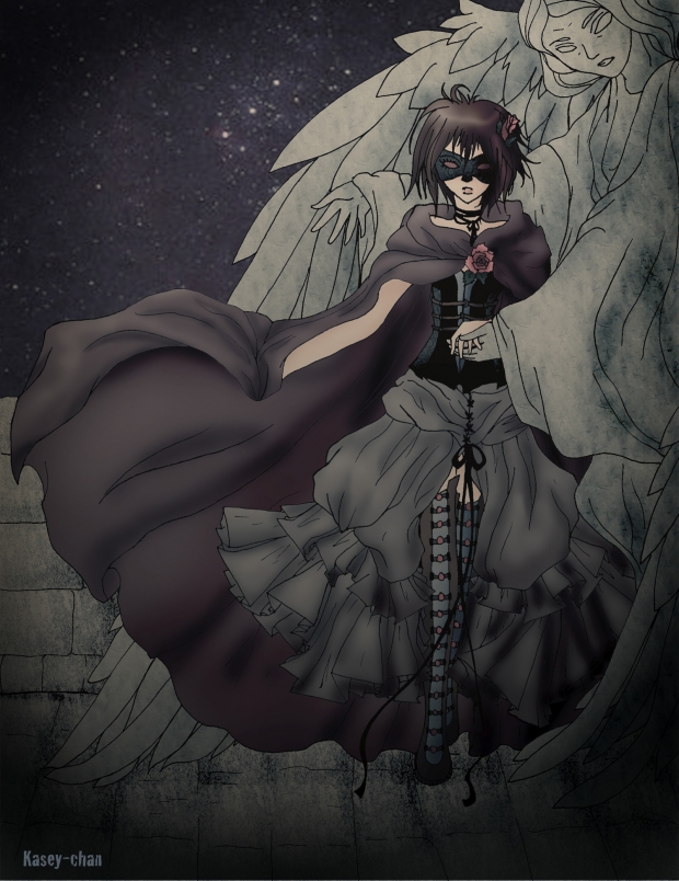 This is a second pic of an old character that I made up. Basically, if the Phantom of the Opera had a daughter, this would be her. I love how the colors turned out. It's spooky and has that antique feel to it as well.