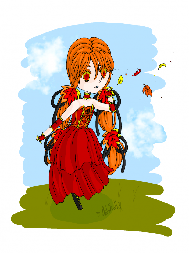 This is Akai! Her English name(not translation) is Autumn. She was embodied by the Spirit of Autumn, giving her special powers.