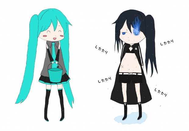 it's of a wet Black★Rock Shooter, because Miku throw water over Black★Rock Shooter because she think she is on fire!