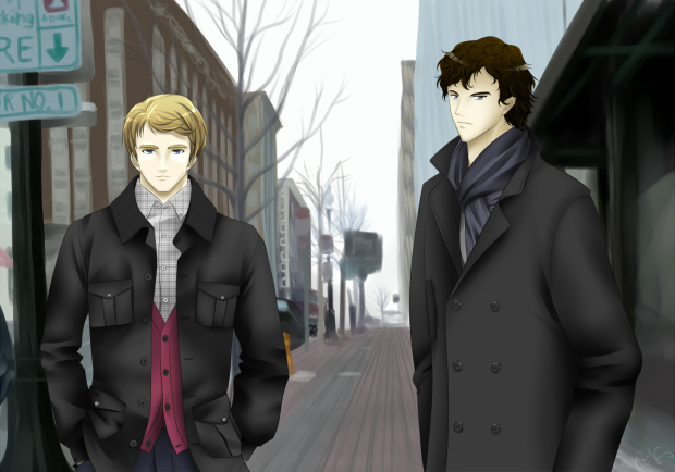 I had so much fun with this one~ The background is referenced from a photo I took from downtown when I was paying my speeding ticket long ago LOL! And I've yet to watch the Sherlock seasons, but I really want to! >w<