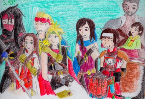 Vincent is being Volke, Aerith is Mist, Cid is Greil, Cloud is Ike, Tifa is Micaiah, Red is Volug, Cait Sith is Ranulf, Yuffie is Mia, Barret is Largo, and Marlene is Amy. (Greil is Mist and Ike's dad so that's why Cid's grabbing them)