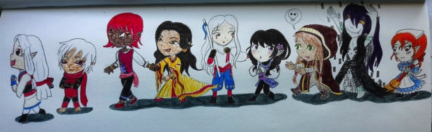 These are characters by himelikestea, invented for her various Zelda-themed Dungeons and Dragons campaigns. Lots of variety and cool backstories involved! Hope you like my renditions.