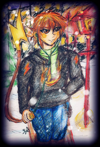 - I present my part of the Secret Santa art trade I am doing with my friend, Toyotami Kun. I drew their oc, Raimundo the Raichu. He's listening to music as he's walking in a park at night in the winter time in the city. I had fun making this. Added snow and bokeh brushes via PicsArt as well as enhancing the colors as well.