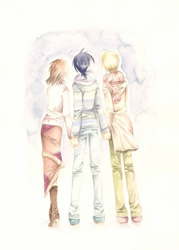 The cover for my Beyblade doujinshi, Kesenai Omoide. It shows Hiromi, Takao and Max - obviously! Watercolours.