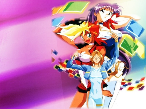 Another Dirty Pair Flash wallpaper I made featuring the Lovely Angels with Touma, a computer whiz they teamed up with in the Mission 2 series.