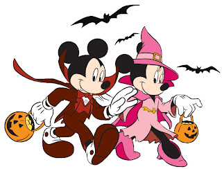 I made the mickey and minnie image grey scale, and then used select and bucket fill tool to make the trick or treat baskets (pumpkins) orange and the moon blue-ish.
