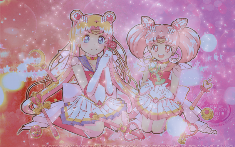 Here's a wallpaper I made featuring Sailor Moon and Sailor Chibi Moon. I apologize for my lack of uploads lately. I've been busy. I just figured I'd make something for fun. I hope everybody enjoys the wallpaper. I tried to make it as pretty and shiny as possible. I'm happy with how it came out.