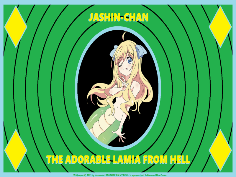 A wallpaper featuring Jashin-Chan from the T.V. anime Dropkick On My Devil! .