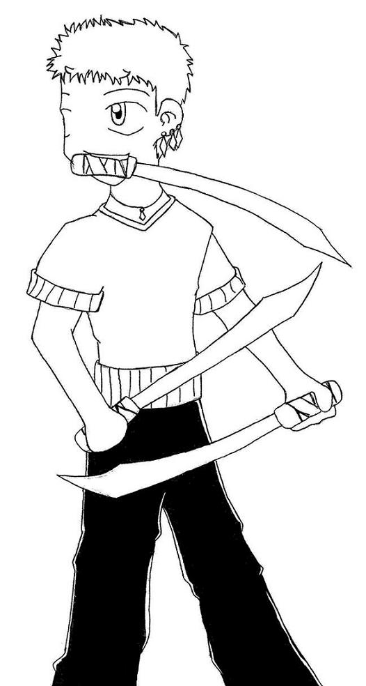 Here is a somewhat chibi pic of Zolo. See! He's making a "Z" with his swords... I say this becasuse no one really noticed this... ~mamma DX
