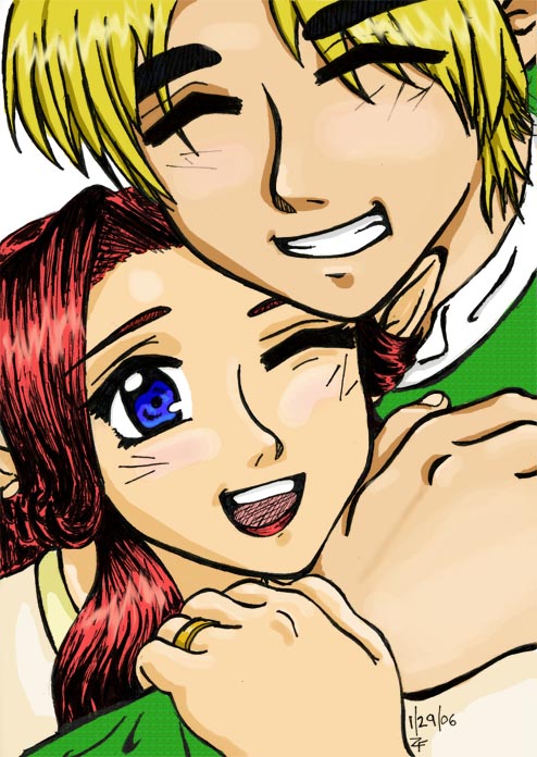 Link and his wife, Malon, in a photobooth. ^_^ Colored on PhotoShop CS.