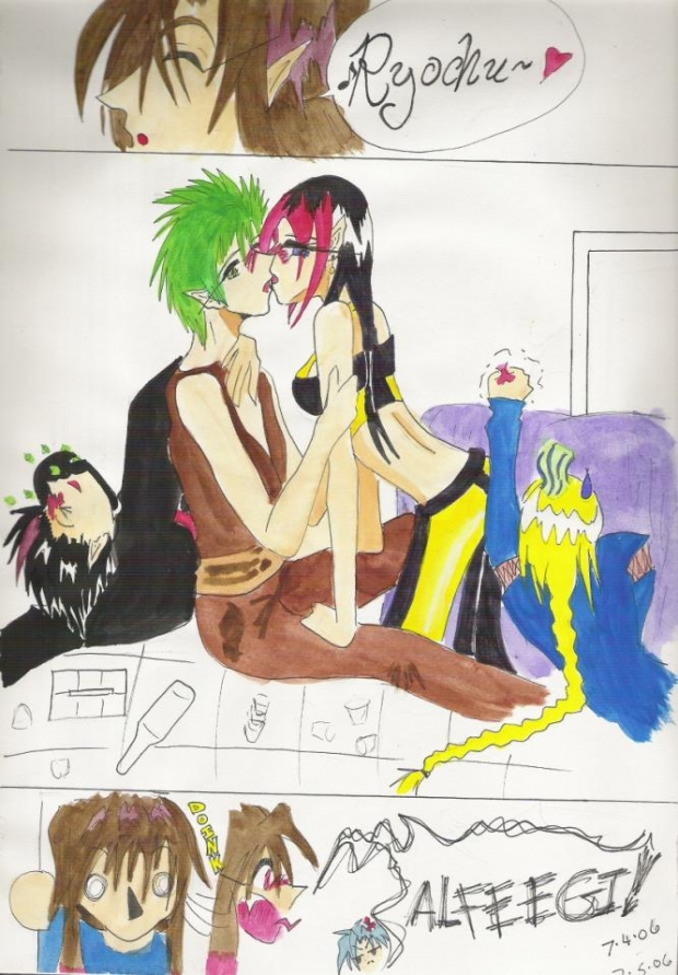 Rath said: "Let's Show little Ryuchu what real drinking is like." And thus happpened. "Spin the Bottle" then occured. Then Ruwalk walked in XD