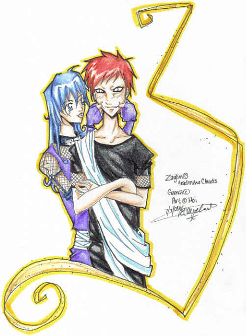 This was my part in an Art Trade with Headintheclouds over on FAC. Thats her character Zaylin with Gaara.