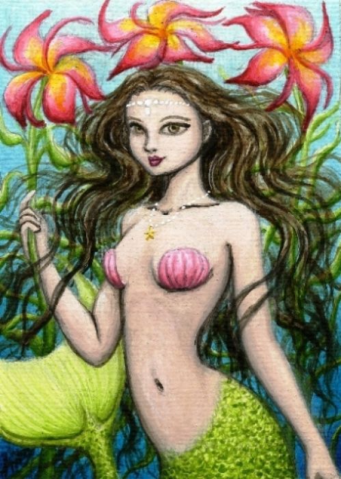 ACEO / miniature acrylic painting. Mermaids are one of my favorite subjects because they're so pretty. "Marina" is part of my 'mermaid girl' collection.