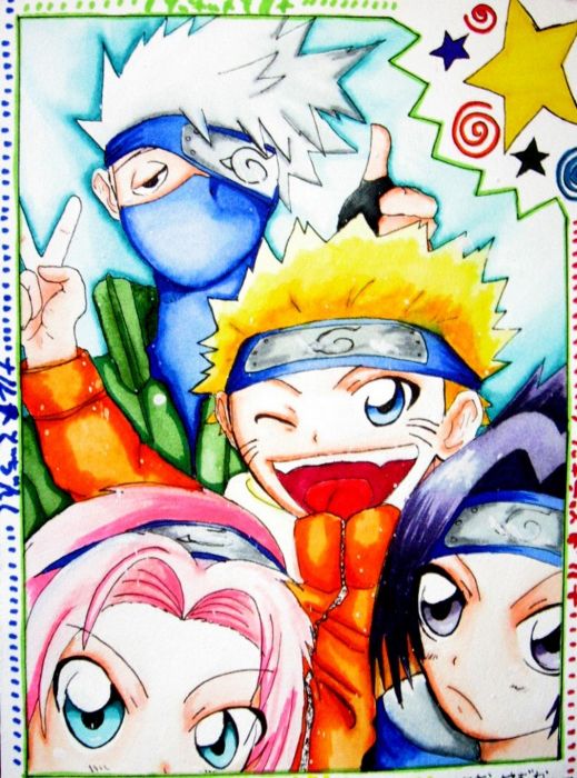 Media: markers+water,inking pens, copic markers, white water color paint. I came up with this cute picture today. I hope you like it!! I didn't want to really make them look like I usually do, but make them more original, like you usually see in doujinshi work! I hope I did a good job... It was my first time really staying away from Kishimoto's style in characters.^^;; Sorry for the crooked frame, I had to crop it and it screwed up my frame!!>