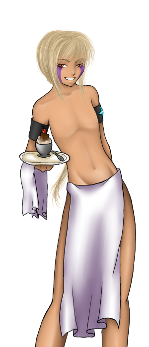 This is for Britt's birthday. I honestly don't know if she's still obsessing over Fort� or not, but... Here he is in one of those little wraps waiters sometimes wear around their hips. Although, honestly, to me it looks like he stole something from Kuja. xD! ...This...is directed at Sonata~♥ Mn. I know the title is corny, but I figured "perverted is good!" since it IS her eighteenth birthday. (Not looking for crit. as this is a gift.)