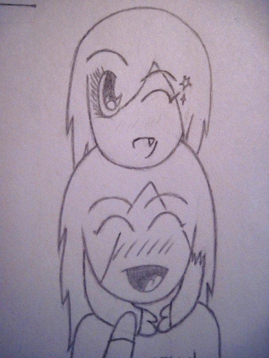 A little chibi drawing I made of a friend and myself :]