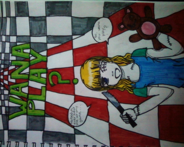 "Nobody's ever beat me at my game. So you wana play?"Thats what the bubbles say . Yeah I was in a twisted mood and created this . No , the knife wasn't SUPPOSED to be pointed at her head but thats how it came out. Please comment and rate nicely.![]()