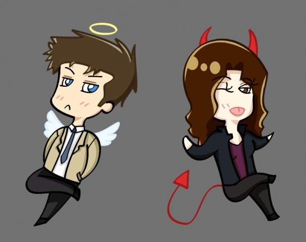These characters are Castiel and Meg from the CW TV show Supernatural, which happens to be my favorite TV show. If you're not familiar with the show, obviously Castiel is an angel and Meg is a demon in the show.
