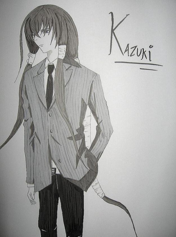 this is a drawing i did of kazuki from get backers. i realized throughout the anime, kazuki doesn't really have a great wardrobe and a decent one for that matter. So to make him look a little more nicer, i put him in a tux XD