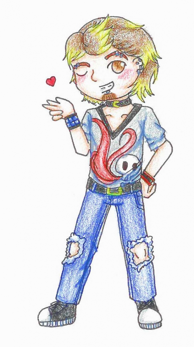 ...I'm sorry that he looks so terrible. My colored pencils didn't want to cooperate and then the scanner at the colors. D: