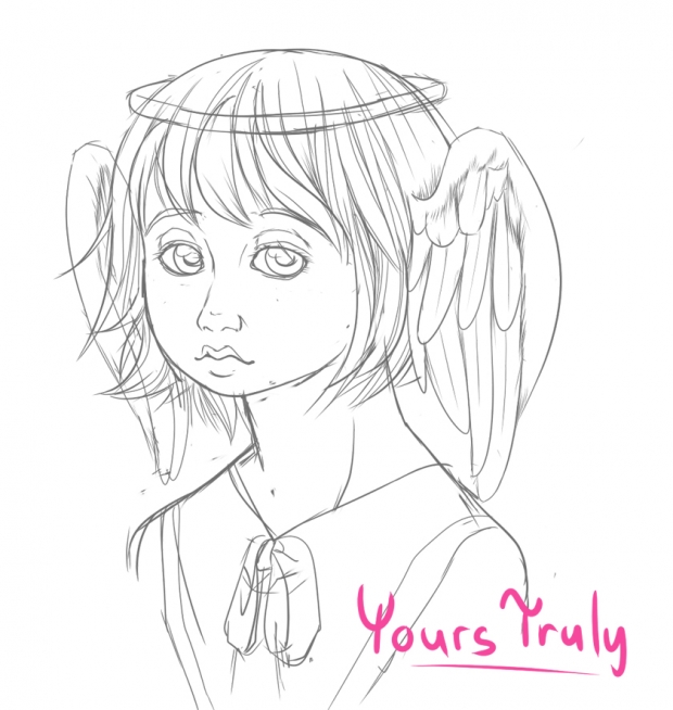 An angel sketch that I ended up practicing realism on. Originally, it was anime styled but it just didn't look right. My style is changing a lot. :0