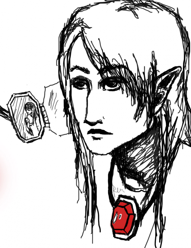 He has a unique locket that he wears around his neck constantly. The locket is decorated with a large cut ruby that he uses to store energy in and on the inside of the locket there is a picture of himself as a child with his father (who was full elf). Tayrm is a trainee in magic and is working on becoming a dragon rider in a fanficI wrote for the Inheritance Series
