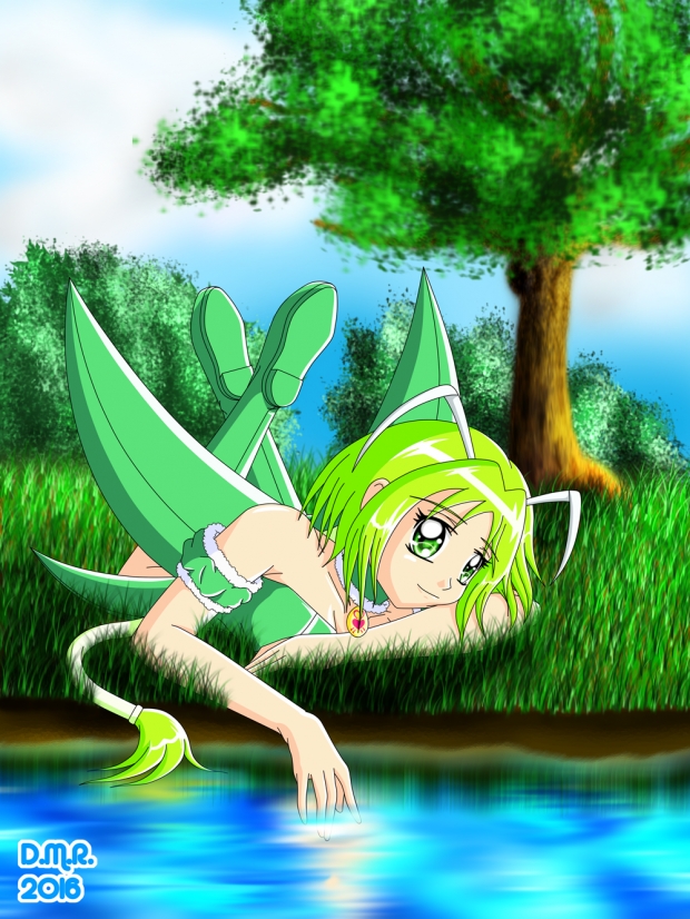 This one was the most difficult for me since Mew Lettuce was already requested (The Mermaid Pic), so I had to come up with a totally different looking picture than the last one. First I tried a hand at different poses that I've never done before until I found one I liked and then colored it. Then I finished it by trying to make the background, using only Photoshop for the very first time. The hardest part for me was the water, which took many tries just to give it a look that I was satisfied with XD.