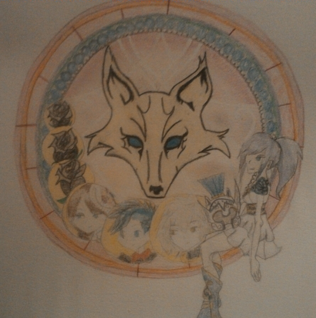 As for what this picture includes, it is my attempt at the kingdom hearts stained glass pictures. I put my faction symbol in the center and guild members in order from guild master in the largest sphere to the newest members and empty slots in descending order. The roses in the empty slots are a reference to the guild I'm apart of. Guild master Asta pulled us together and created the black rose guild, and I'm proud to be a part of such a great group even if we as only four members strong.