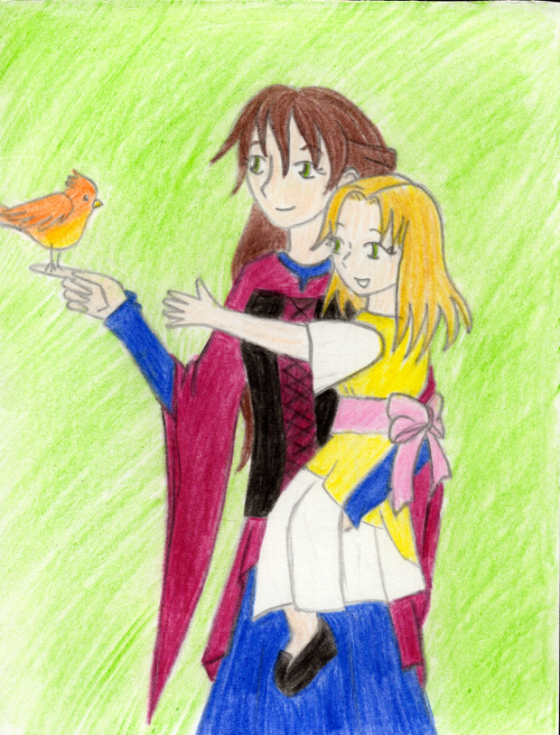 This is another thing that I drew on a card. I edited Micaiah's and Sanaki's hair colours to make them look more normal.