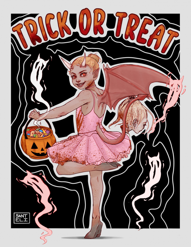 - ballerina bats, demon, devil, Halloween, pumpkin, trickortreat
