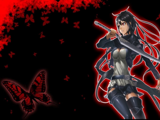- anime, black, butterfly, girl, random, red, samurai, samurai girl
