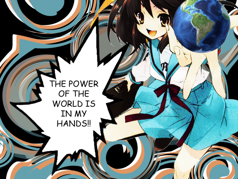 I couldn't think of anyone else except Haruhi for this theme. She is really powerful, since the whole world operates according to her thinking, as said by Koizumi xD