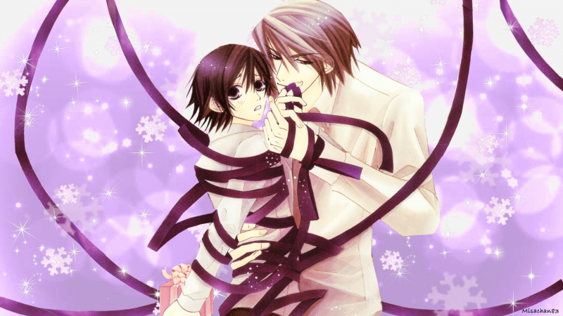 This wallpaper ended up being a fun challenge for me to make, and I'll admit that I wanted to use this image for a long time. I just really like it. My idea was for Misaki to want to give Usagi a present, only for the present to end up being him (hence the ribbons all around). Of course, since we're so close to Christmas and with the presents theme, I had to do a pretty winter theme all around it too.