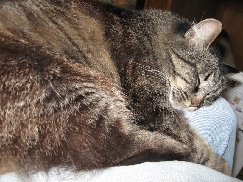 Shadow, the queen and my feline adorer. She will literally perk up at my mere presence in the room, and if she sees me sit down she makes a beeline for my leg. Mom? Dad? Nah. Any of the sisters? O hai, I has a sleepy nao; go 'way. Me? Instant hug.