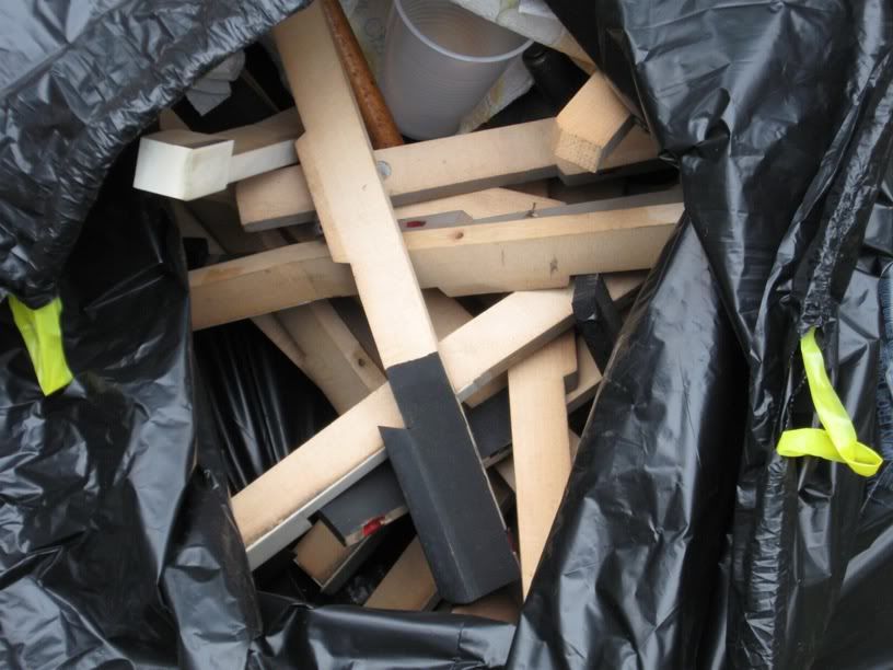 We took out all the keys, shoving them all, along with all the various screws, into a bag which we subsequently used to dispose of our lunch trash.