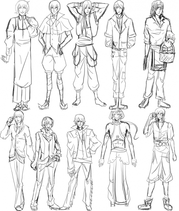 I'm going to do the boys/girls next....ummm...What do I call them!? TT^TT I'm going to do the 'bachelors' next...let's say that. I don't want to draw girls, to...>3> It's just not as fun, until I get to the legs! >:D